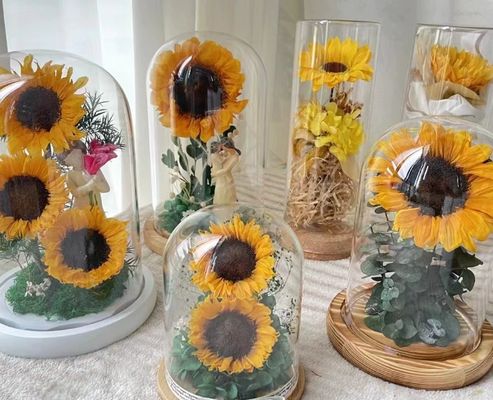 চিরন্তন সূর্যমুখী চিরন্তন ফুল সূর্যমুখী উপহার বাক্স গ্লাস গম্বুজ তোড়া ফুলের উপাদান সংরক্ষিত ফুল সূর্যমুখী পাইকারি